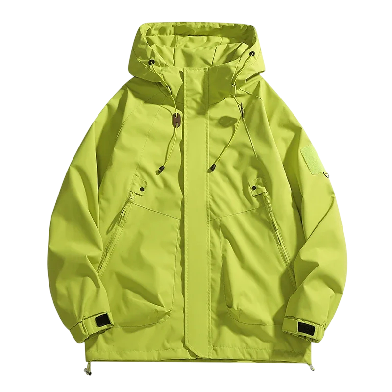Tato unisex nepromokavá bunda kombinuje funkčnost, pohodlí a styl v jednom. Vyrobená z kvalitního odolného polyesteru, který poskytuje spolehlivou ochranu proti dešti a větru, je ideální volbou pro každodenní nošení i outdoorové aktivity. Bunda je vybavena praktickou kapucí, jež vás ochrání při nečekaných přeháňkách, a hladkým zipem, který umožňuje snadné oblékání i svlékání.