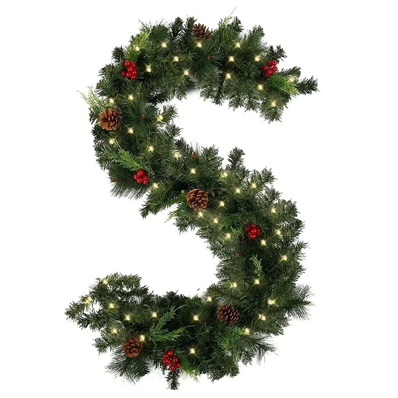 Vánoční girlanda 1,8 m ve tvaru písmene S se světýlky Světelná zimní dekorace na dveře stěnu či zábradlí Hustá sváteční ozdoba