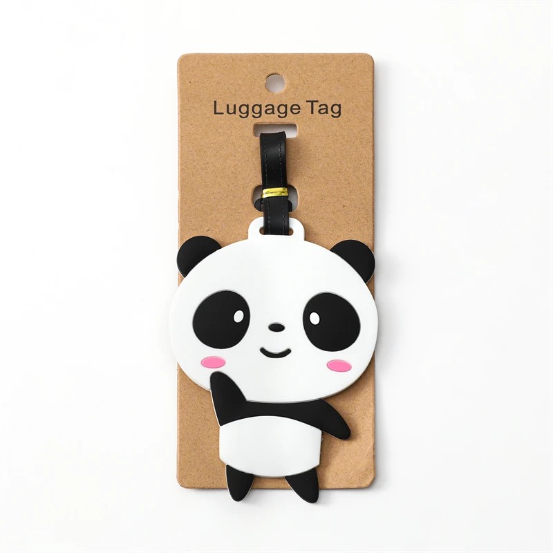 Visačka na cestovní zavazadlo s motivem pandy 10,5 × 10,5 cm silikagelová černo-bílá identifikační jmenovka na kufr nebo cestovní tašku